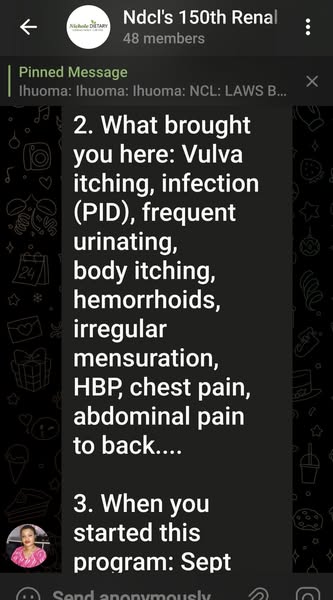 2. What brought you here: Vulva itching, infection (PID), frequent urinating, body itching, hemorrhoids, irregular mensuration, HBP, chest pain, abdominal pain to back....