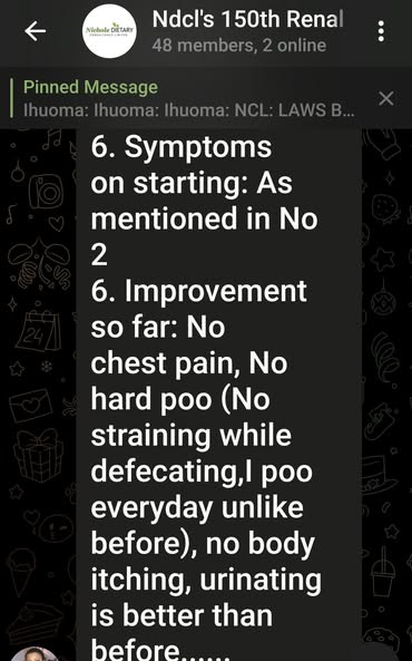 6. Improvement so far: No chest pain, No hard poo (No straining while defecating,I poo everyday unlike before), no body itching, urinating is better than before......