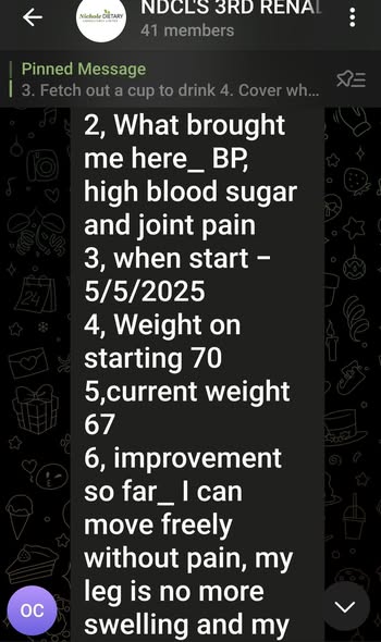 6, improvement so far_ I can move freely without pain, my leg is no more swelling and my sugar level is normal