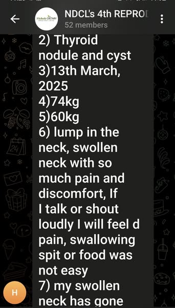 7) my swollen neck has gone down, I can talk or shout loudly now, I can swallow at ease now