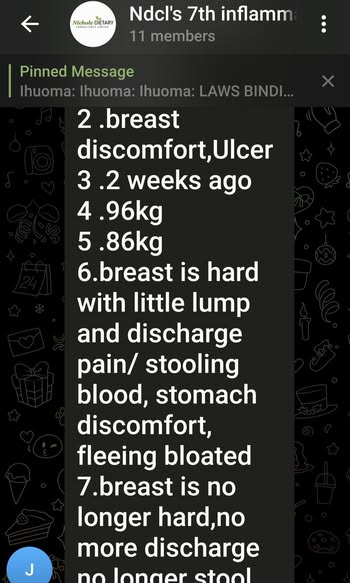 6.breast is hard with little lump and discharge pain/ stooling blood, stomach discomfort, fleeing bloated
