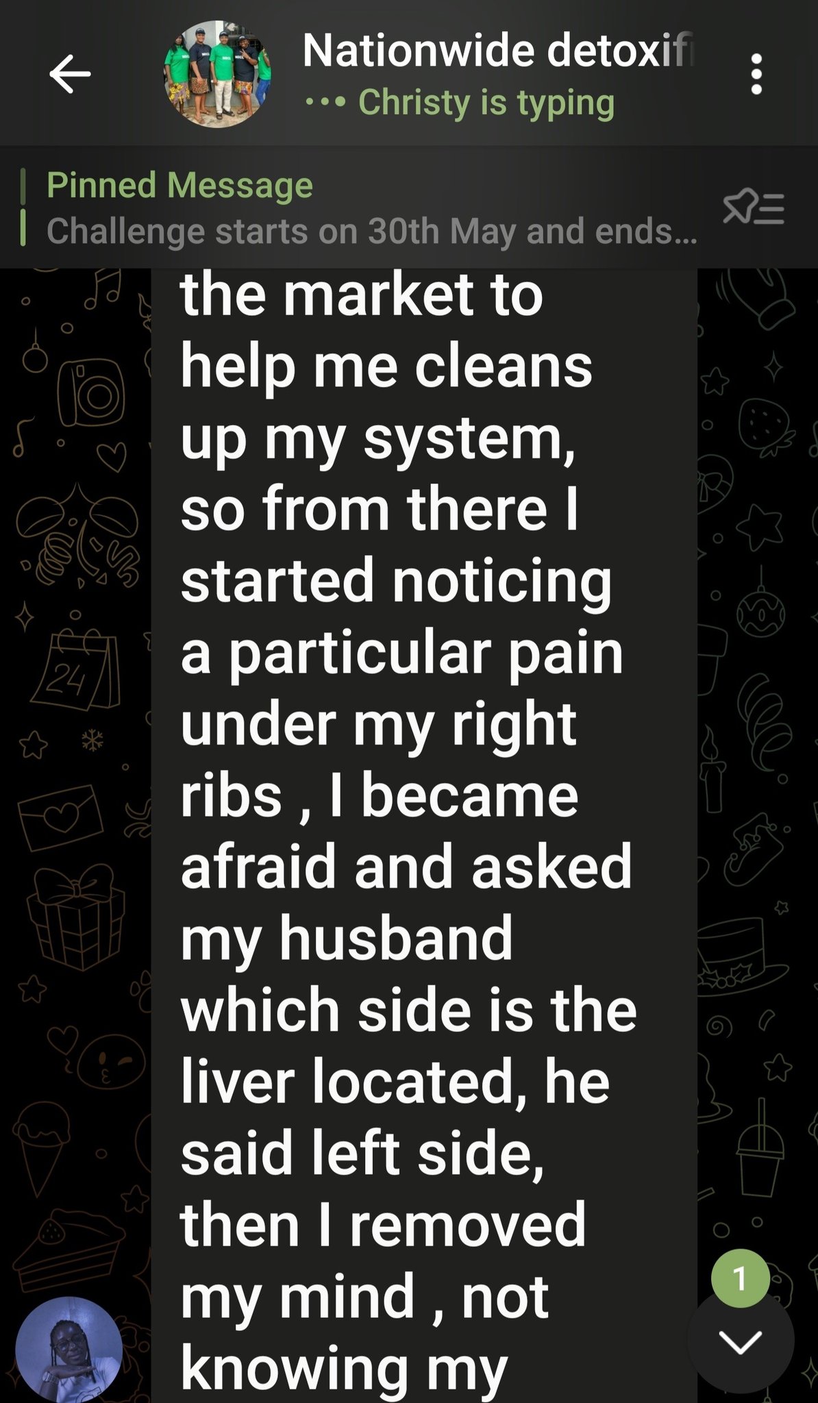 This one is still shocking me though, I miscarried twins last year and I started taking agbo a woman mixed for me in the market to help me cleans up my system, so from there I started noticing a particular pain under my right ribs , I became afraid and asked my husband which side is the liver located, he said left side, then I removed my mind , not knowing my husband didn't want me to start thinking about my liver meanwhile he was always praying for me against such sickness, so later the pain continued and I was forced to browse the side liver is located and it was confirmed same place that has been paining me I became more scared