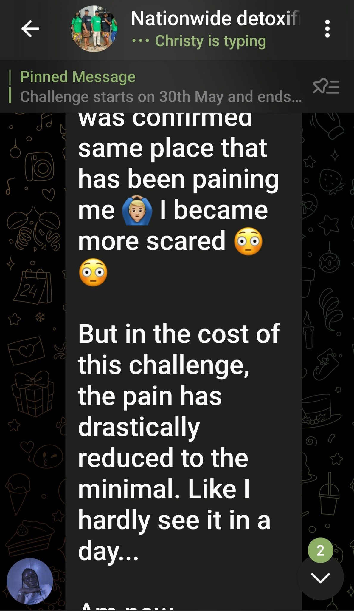 But in the cost of this challenge, the pain has drastically reduced to the minimal. Like I hardly see it in a day...